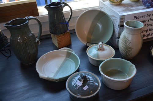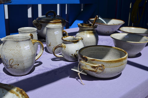 POTTERY, GLASS, WOOD, JEWELRY, PRESERVES - HAND MADE LOCALLY; TABLE LINENS - MADE IN FRANCE